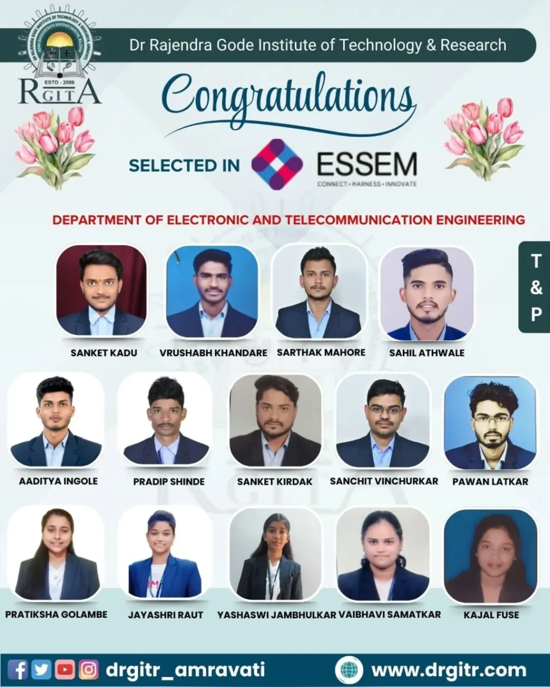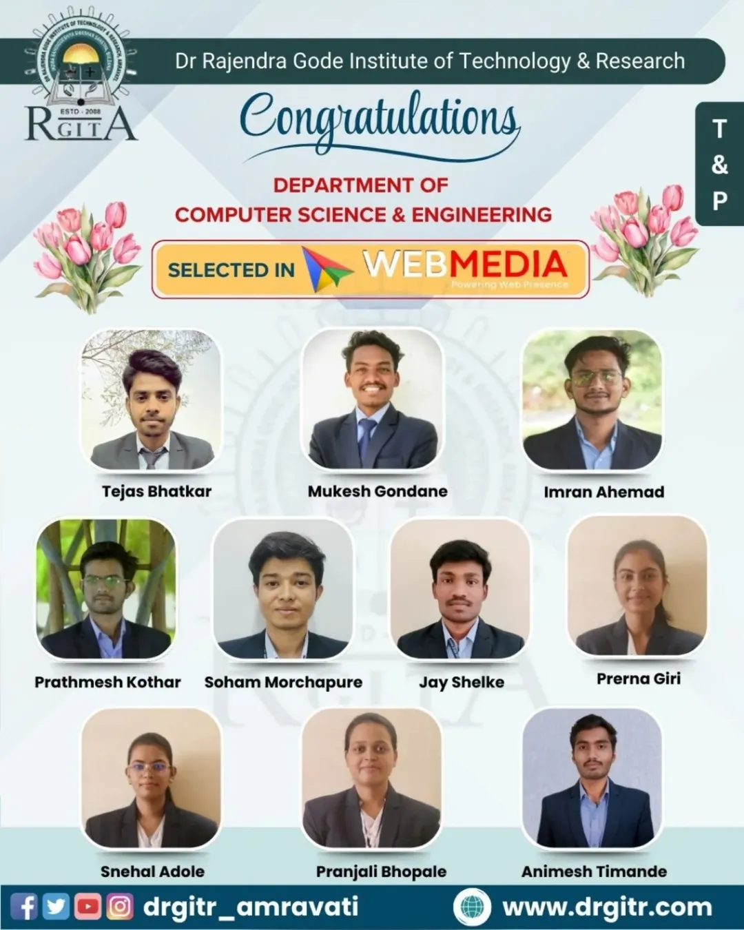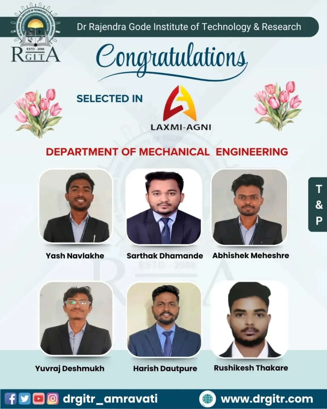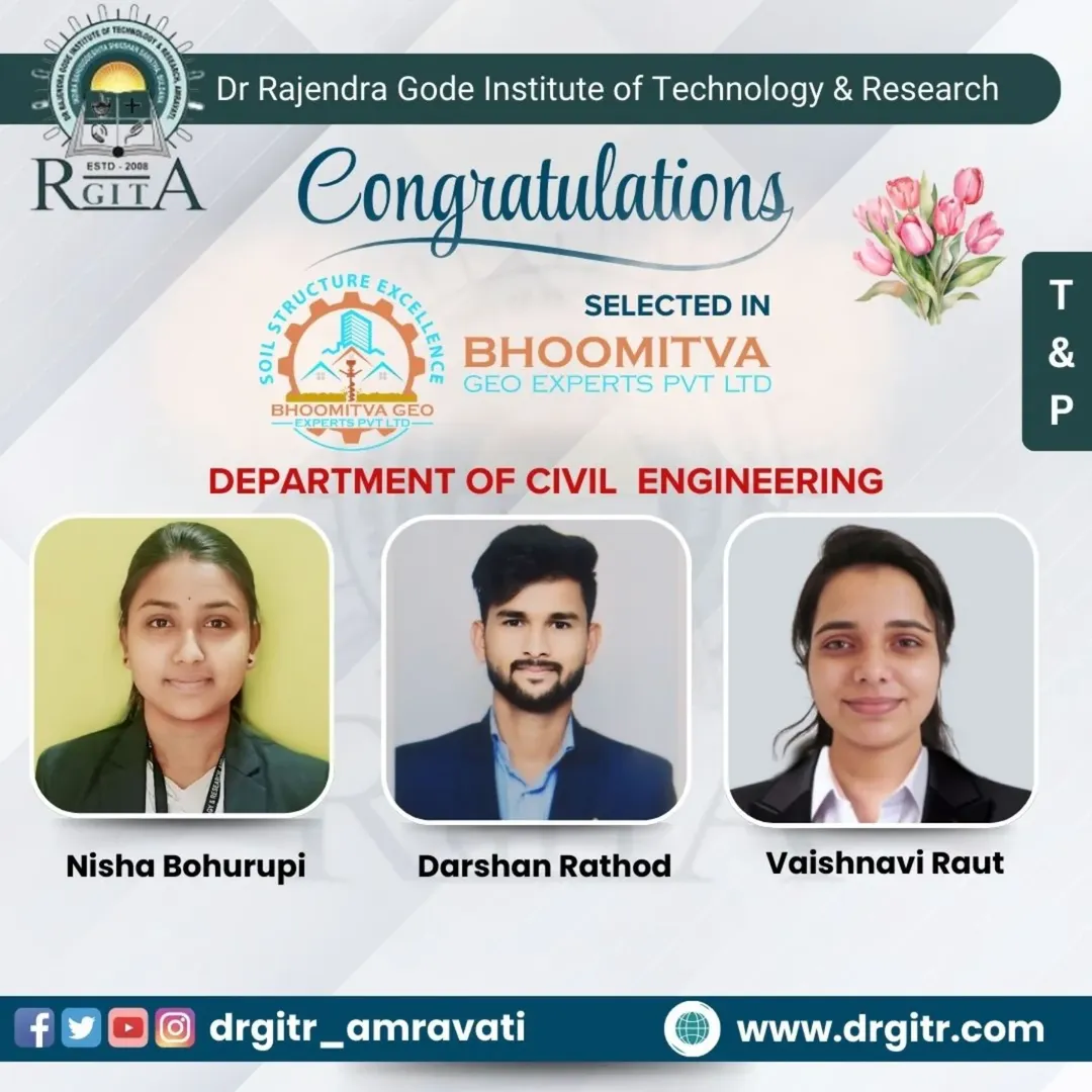 Why DRGIT&R? This institute was established in the year 2008, approved by All India Council for Technical Education (AICTE), affiliated to Sant Gadge Baba Amravati University, Amravati. This institution is accredited by National Assessment and Accreditation Council (NAAC).